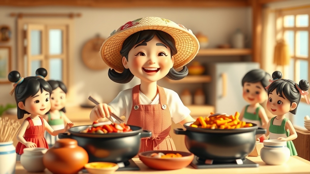 「お母さん」という意味の韓国語ですが、グループやコミュニティの中で、周囲の世話を焼き、食事の準備を一手に引き受けるようなリーダー的存在に対しても親しみを込めて使われる呼称です。