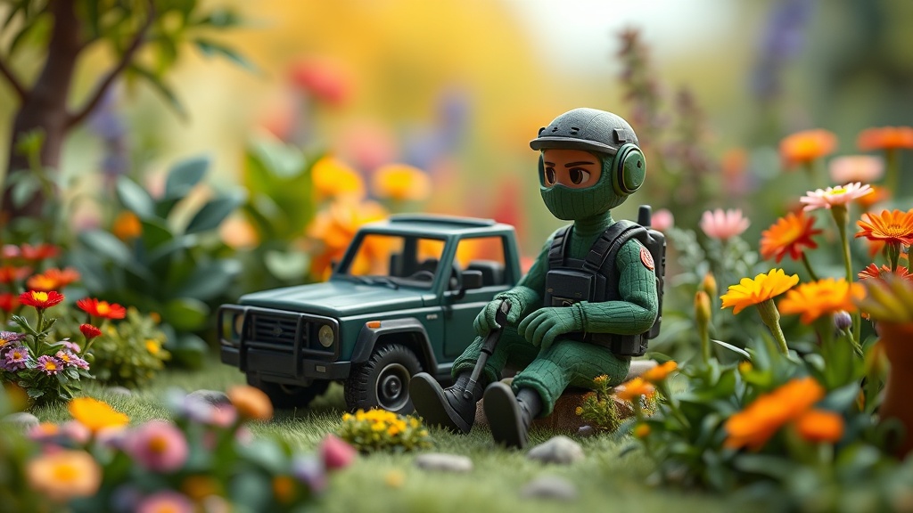 今回のポップアップの最大の特徴は、緊張感あふれるバトルロイヤルの「戦場」と、静かな自然の「庭園」という相反する要素を組み合わせた点にあります。会場内には、ゲーム内に登場するオートバイやピックアップトラック、フライパン、そしてカモフラージュ用のギリースーツといった代表的なアイテムに、植物による演出を施したフォトゾーンが設置されます。