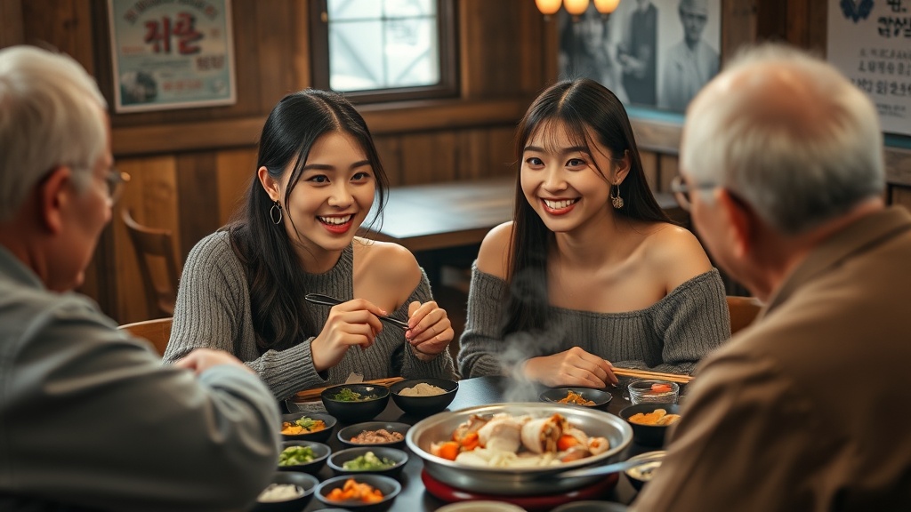 韓国は儒教の精神が根強く残っており、食事の場でも「目上の人を敬う」というルールが非常に大切にされます。例えば、年長者が箸をつけるまで待つ、目上の人の器にまず料理を取り分けるといった習慣です。これは日本のお酌や「いただきます」の文化にも通じますが、韓国の方がより年功序列がはっきりと形式化されている印象があります。